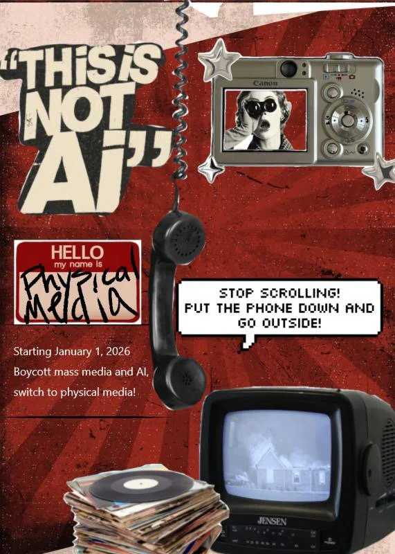 It is clear that there has been a resurgence in people using physical media, both in and outside creative practices, as a means of both disconnecting from the fast-paced digital world and growth in AI use that surrounds us and engaging with something more tangible. Will 2026 and Ava’s Physical Media Movement see a reversion back to simpler ways of communicating, consuming music and creativity? Will one movement be enough to convince people to ditch their smartphones for more basic media? Will it be accessible for everybody to participate in this movement? Has our use of technology and how we consume creativity, information and each other’s lives changed beyond relying on physical media? Only time will tell, but it is always worth trying to connect to the physical if you can, whether you are a creative or not, even in small ways.